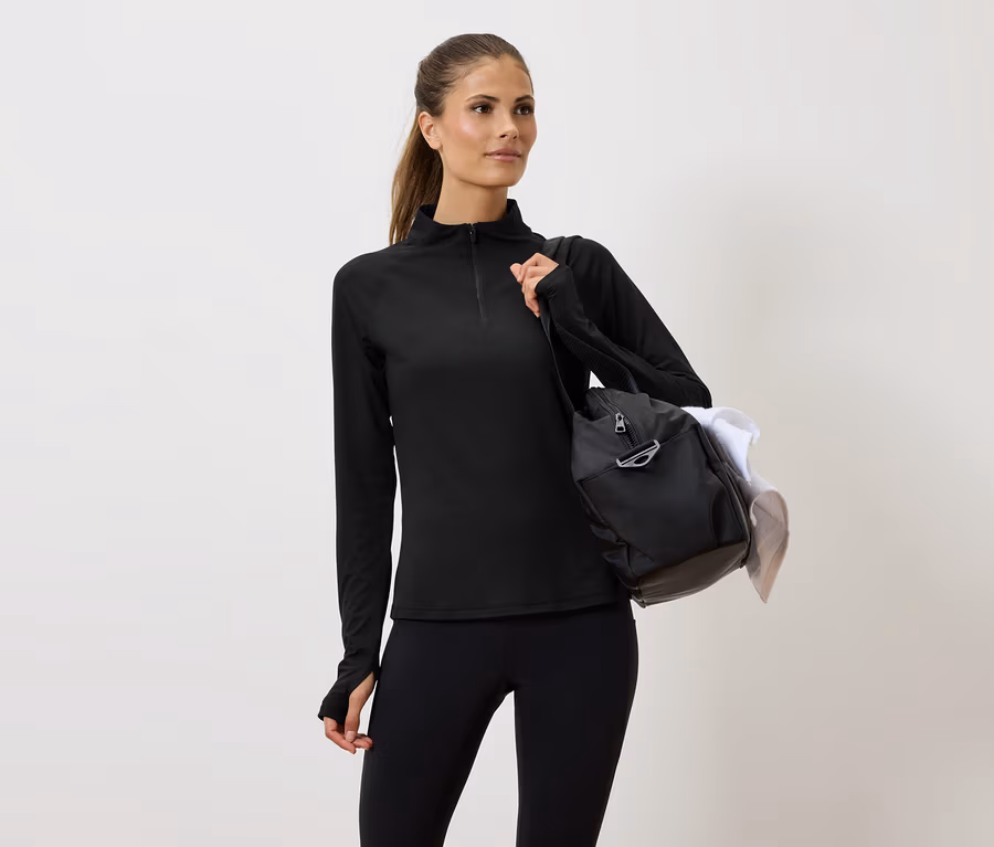 Félcipzáras sportpóló, fekete