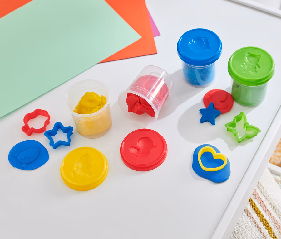 • 4 doboz 140 g-os gyurma különböző színekben - 4 2D-s motívummal a fedelén és 4 további kiszúróformával