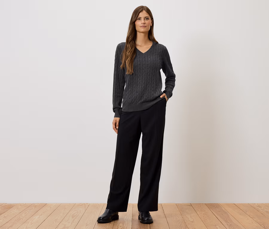 Fonott mintás kötött pulóver, szürke