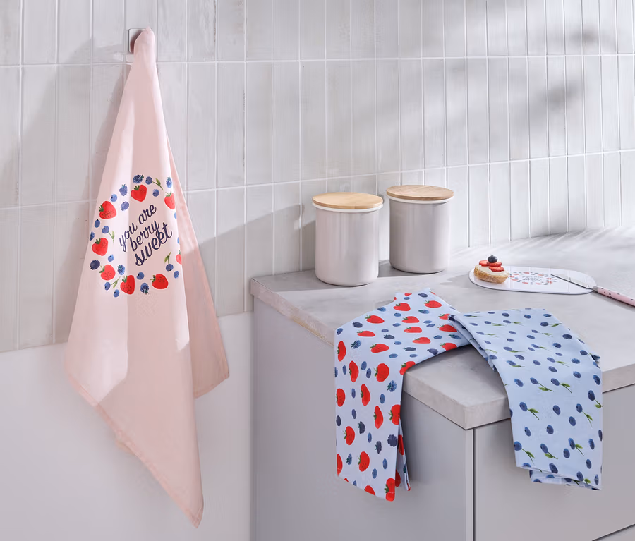 - 2x világoskék, színes gyümölcsmintával, 1x rózsaszín, színes gyümölcsmintával