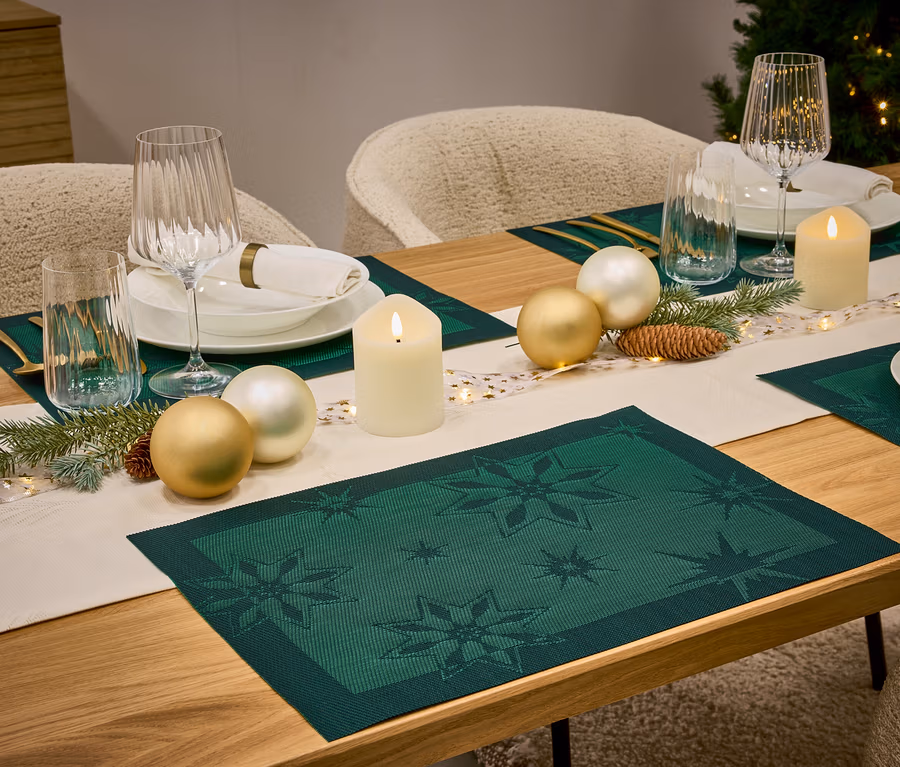 4 db tányéralátét, csillagos, zöld, 45 x 33 cm