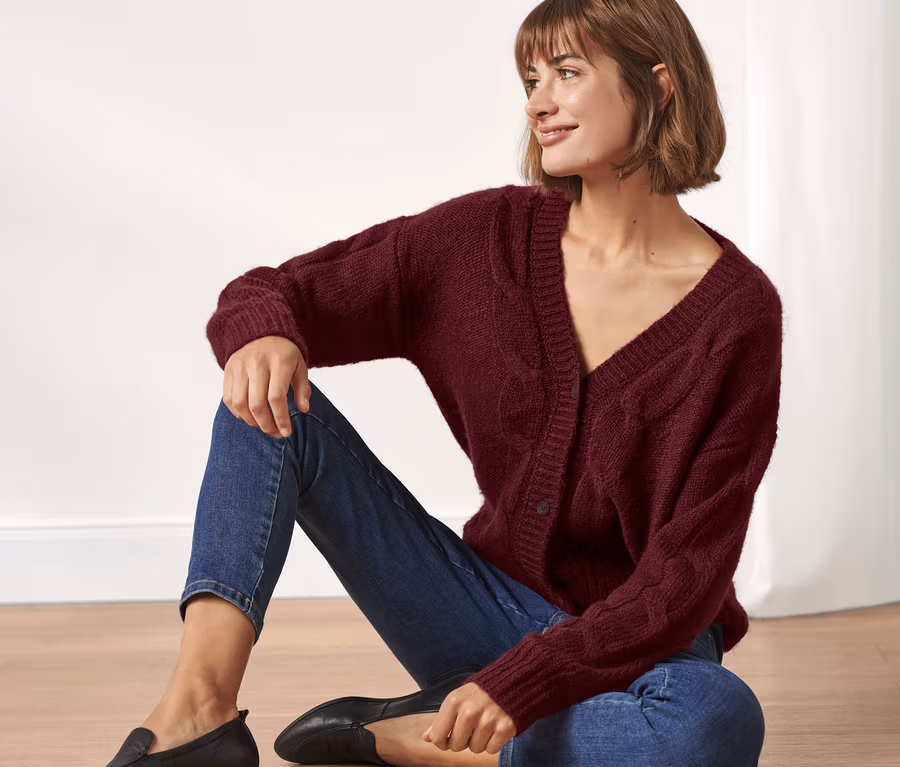 - Rugalmas, bordás kötésű szegély az ujjvégen és a derékrészen
