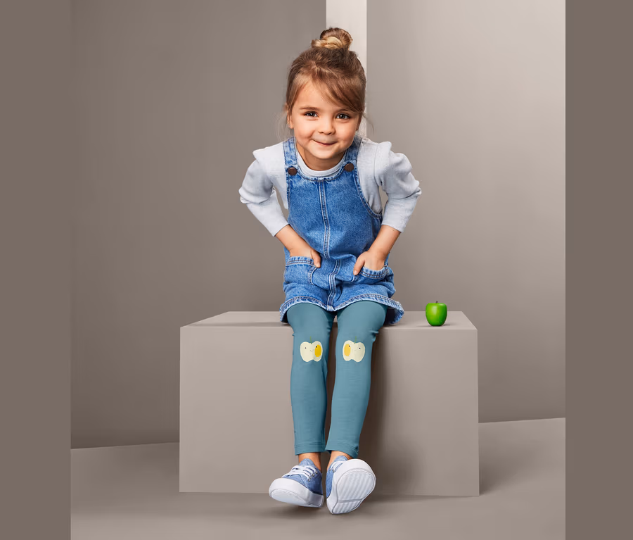 Ha szaladgálás és játszás szerepel a napirenden, akkor a leggings a legjobb választás a gyerekek számára - és ez a két nadrág különösen kényelmes: puha pamut-sztreccs anyaguknak köszönhetően minden mozdulatnál kellemesen simulnak a bőrre, míg a rugalmas derékrész biztos illeszkedésről gondoskodik, miközben nem szorít. Az elasztán formatartást kölcsönöz a nadrágoknak és rendkívül kényelmes viseletet biztosít. Az egyik nadrág egyszínű, a másikat pedig bűbájos, nyomott almaminta díszíti a térdrészen.