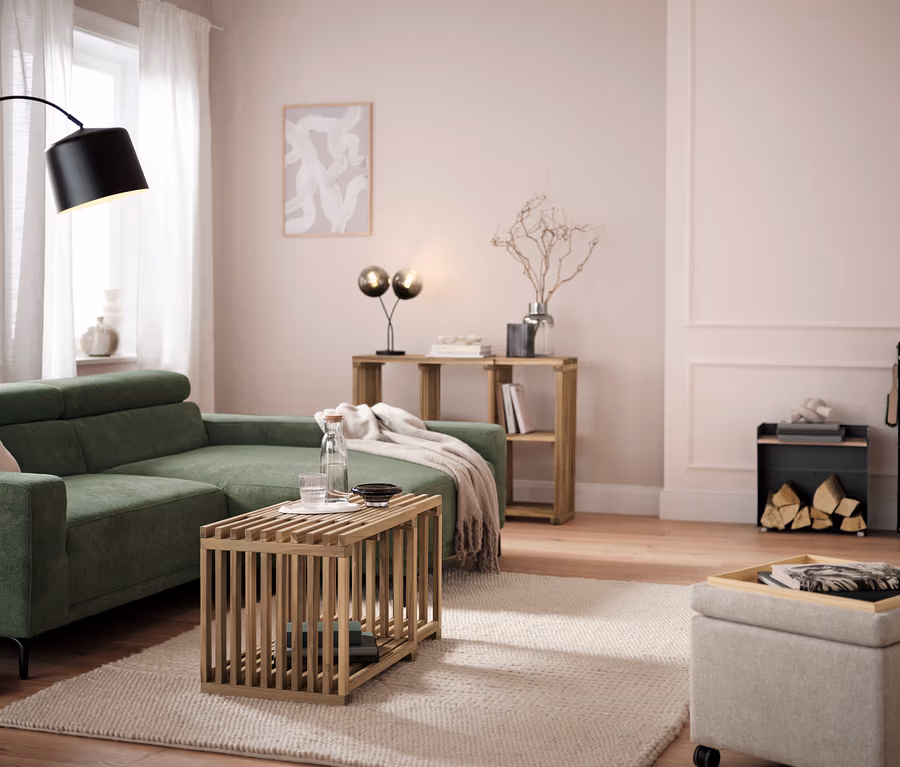 - Dekoratív falécekből készült skandináv stílusú alacsony polc