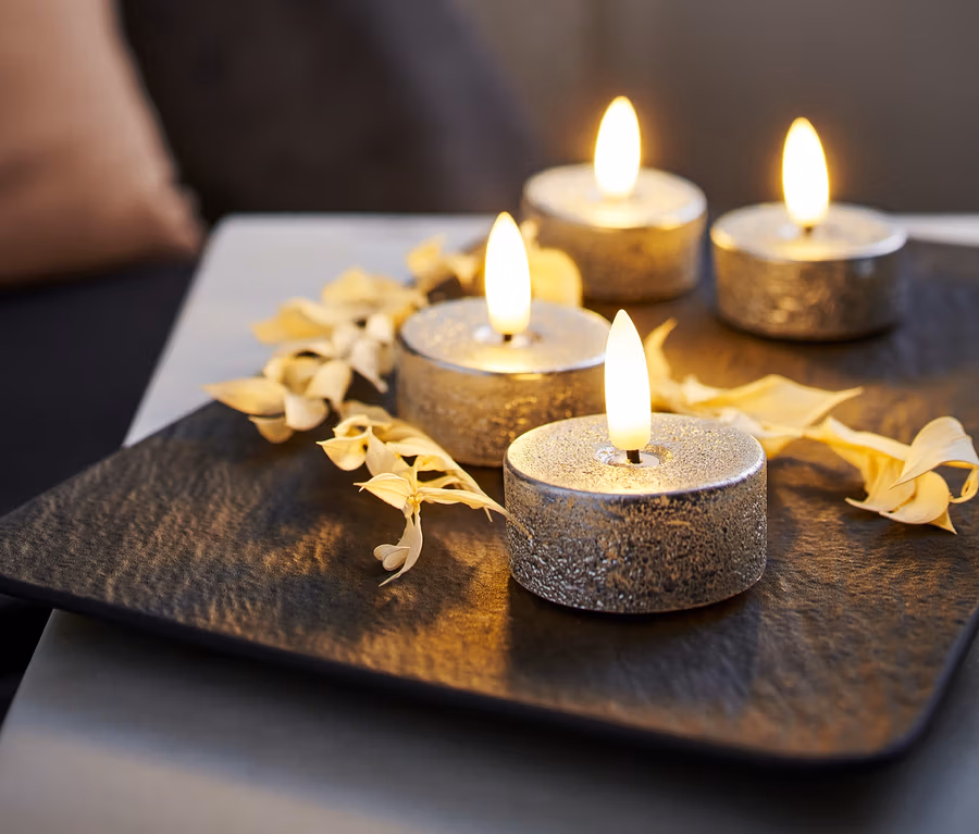 - A gyertyafényt lobogó fényhatású LED-es lánggal utánozzák