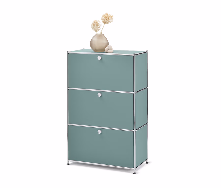 Fém komód »CN3«, 3 lenyíló ajtóval, zsályazöld