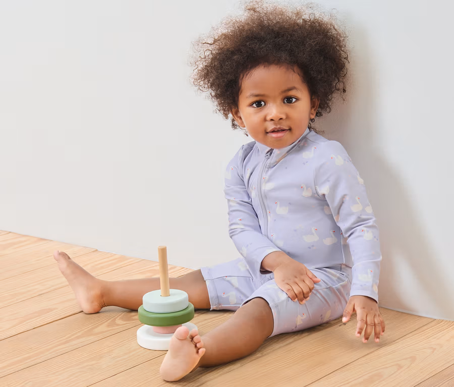 Kisgyermek kezeslábas, 80-as fényvédő faktorral, hattyús