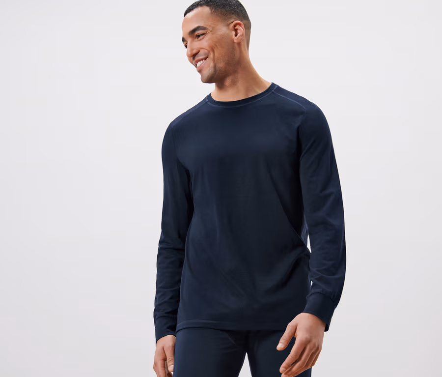 Férfi hosszú ujjú funkcionális felső, merinógyapjúval, sötétkék