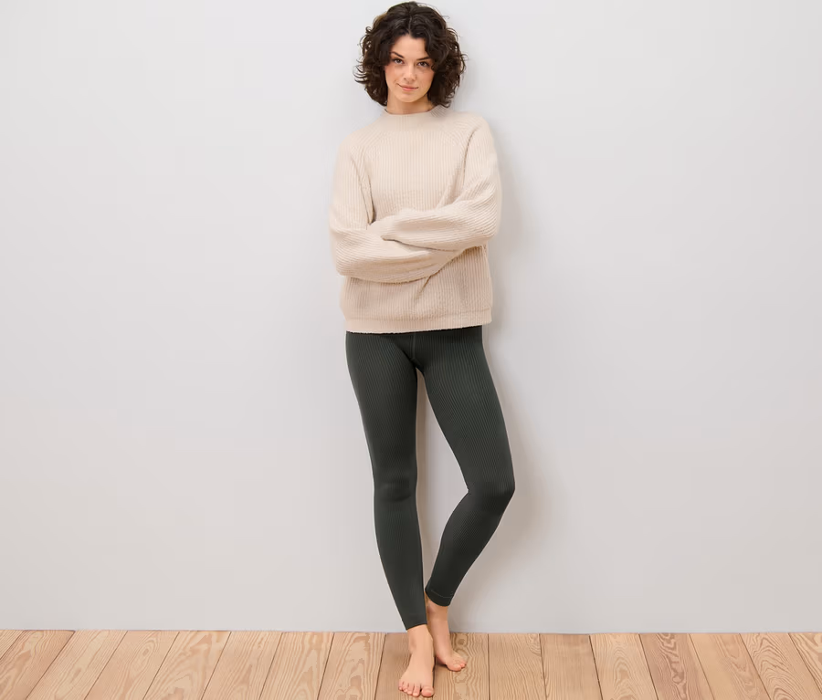Női termoleggings, bordázott, khaki