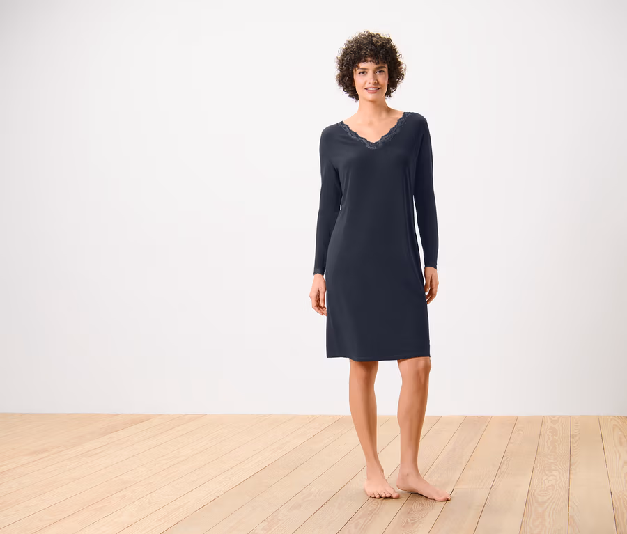 Női hálóing csipkerátéttel, sötétkék