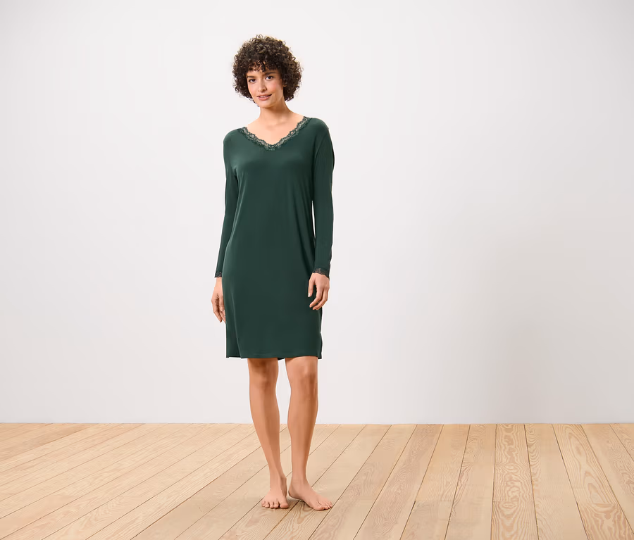Női hálóing csipkerátéttel, sötétzöld