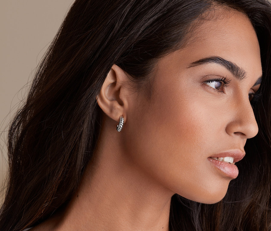 Női ezüst fülbevaló, csavart, ródiiummal bevont