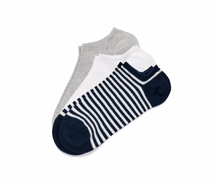 3 pár női bokazokni szettben, csíkos/szürke/fehér