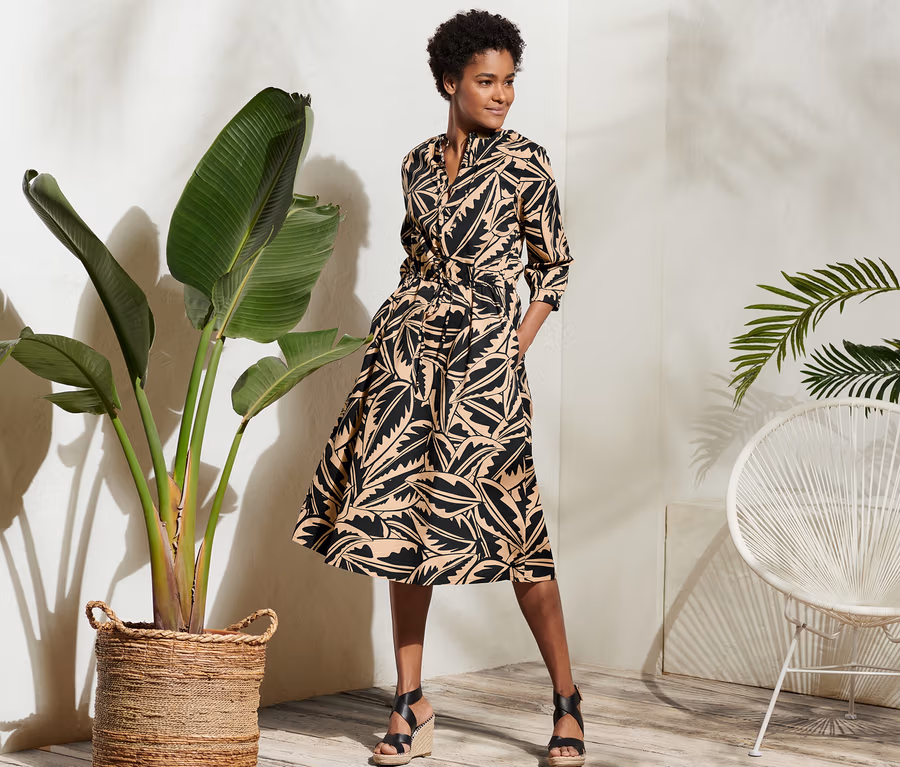• A teljes ruhán pálmaleves nyomott mintával