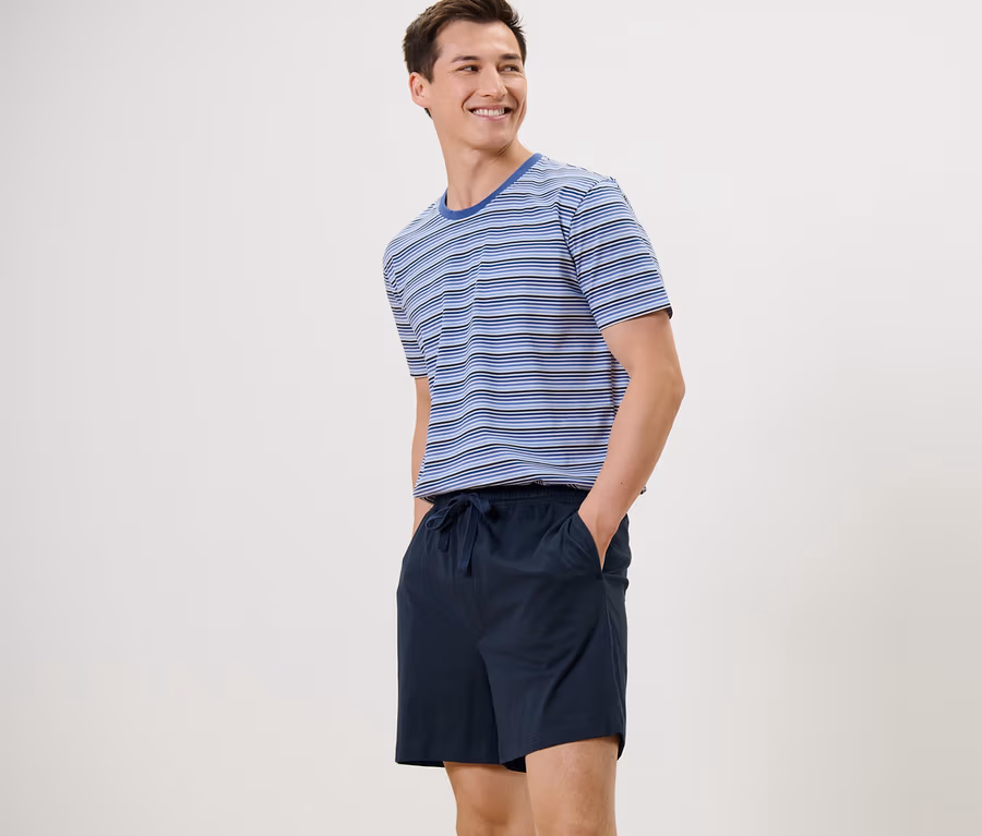 Férfi rövidnadrágos pizsama, csíkos, kék