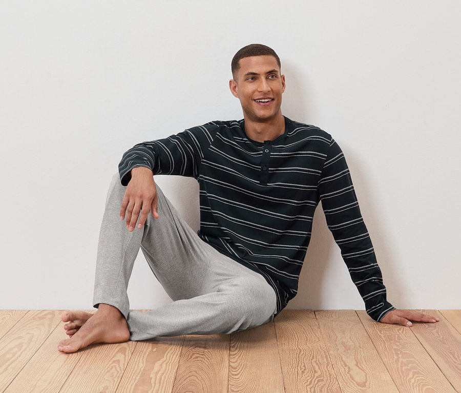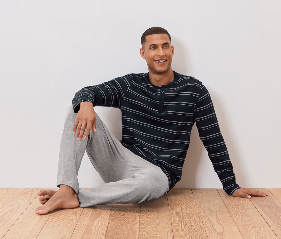 2 férfi hosszú ujjú henley felső, csíkos/sötétkék