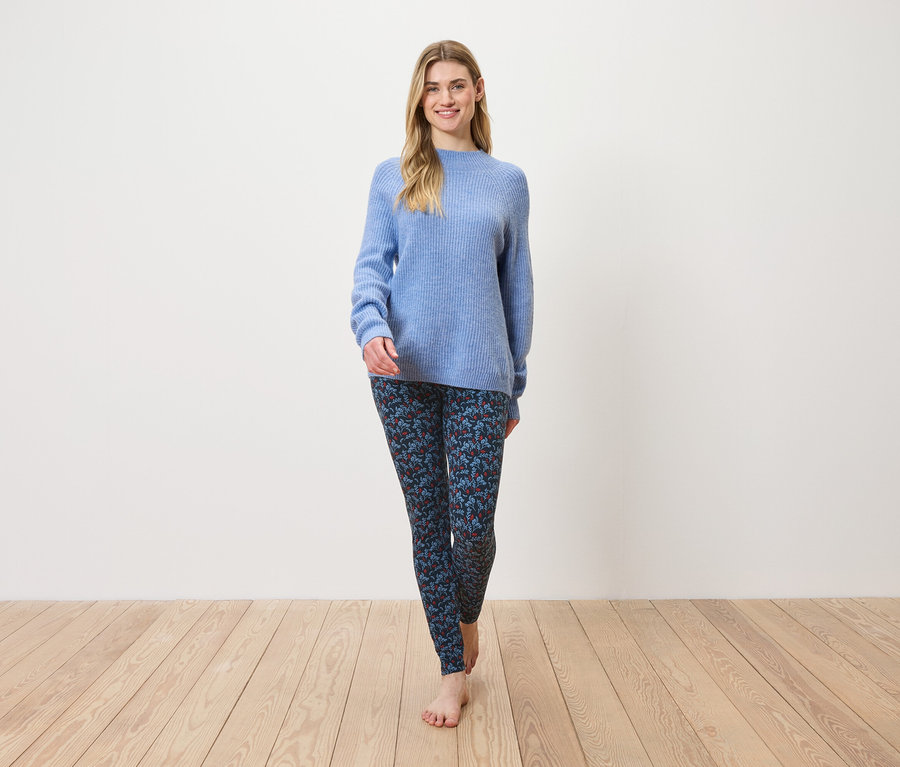 Női leggings, levél mintás, sötétkék