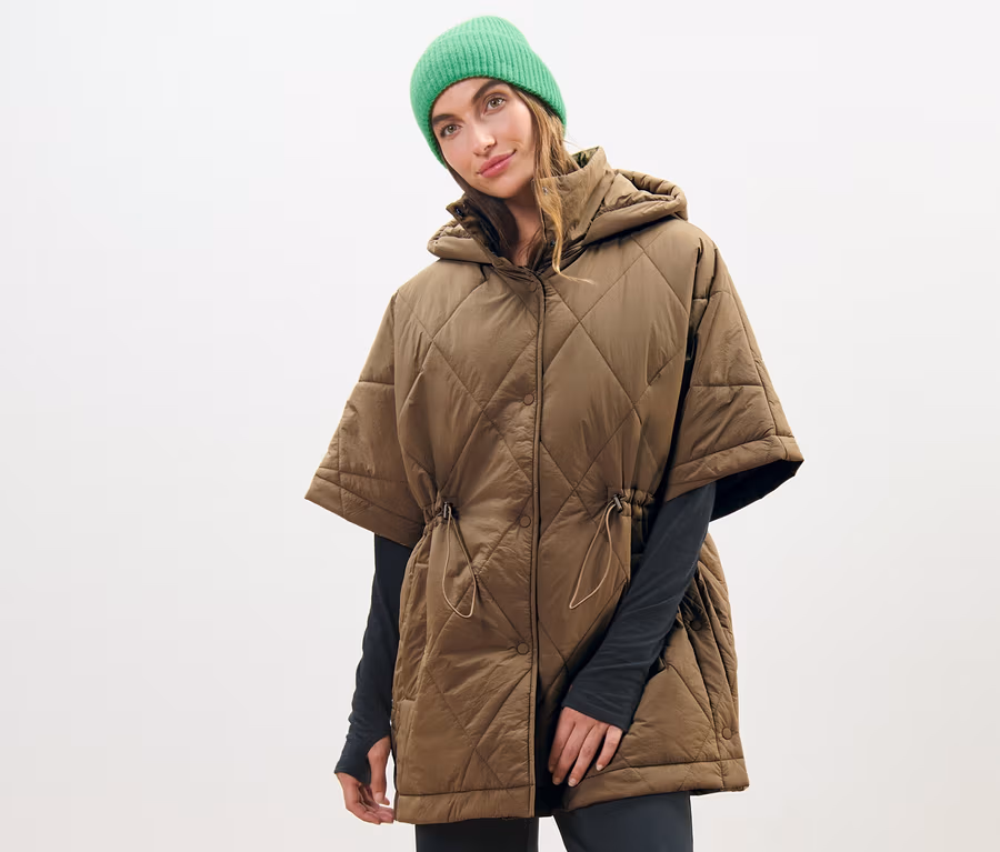 Női steppelt poncsó, barna