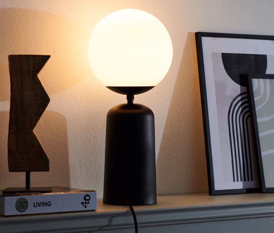 Üveggömbös asztali lámpa, fekete