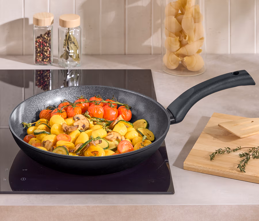 - PFAS anyagoktól mentes tapadásmentes bevonattal – ideális zsírszegény sütéshez, megakadályozza az étel leégését és letapadását, könnyen tisztítható