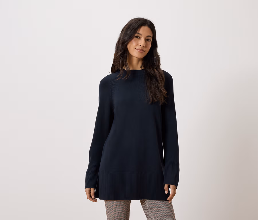 - Széles, bordás kötésű szegély az ujjvégen és az alsó szélen