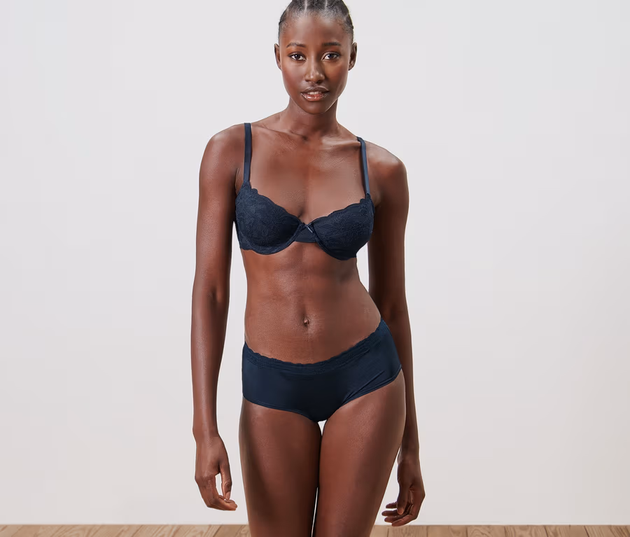 5 db női magas derekú alsó, microtouch, csipkés, sötétkék