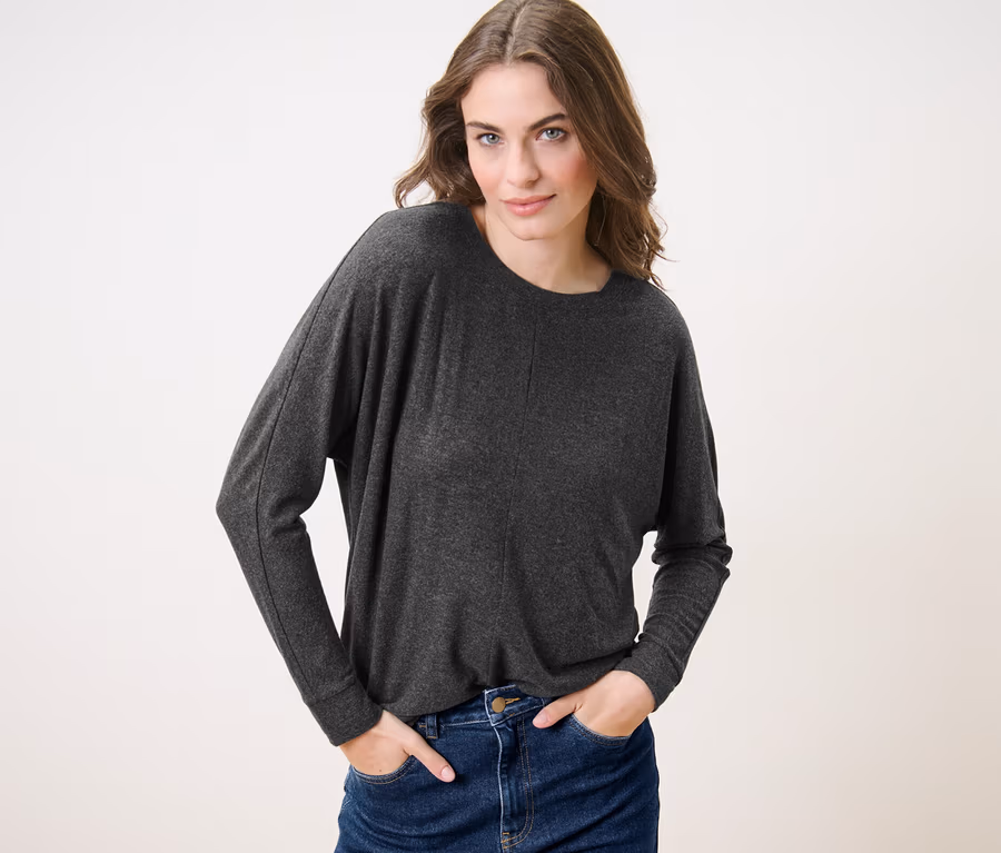 - Ez a denevérujjú felső fenntartható fából készült szálakat tartalmaz.
