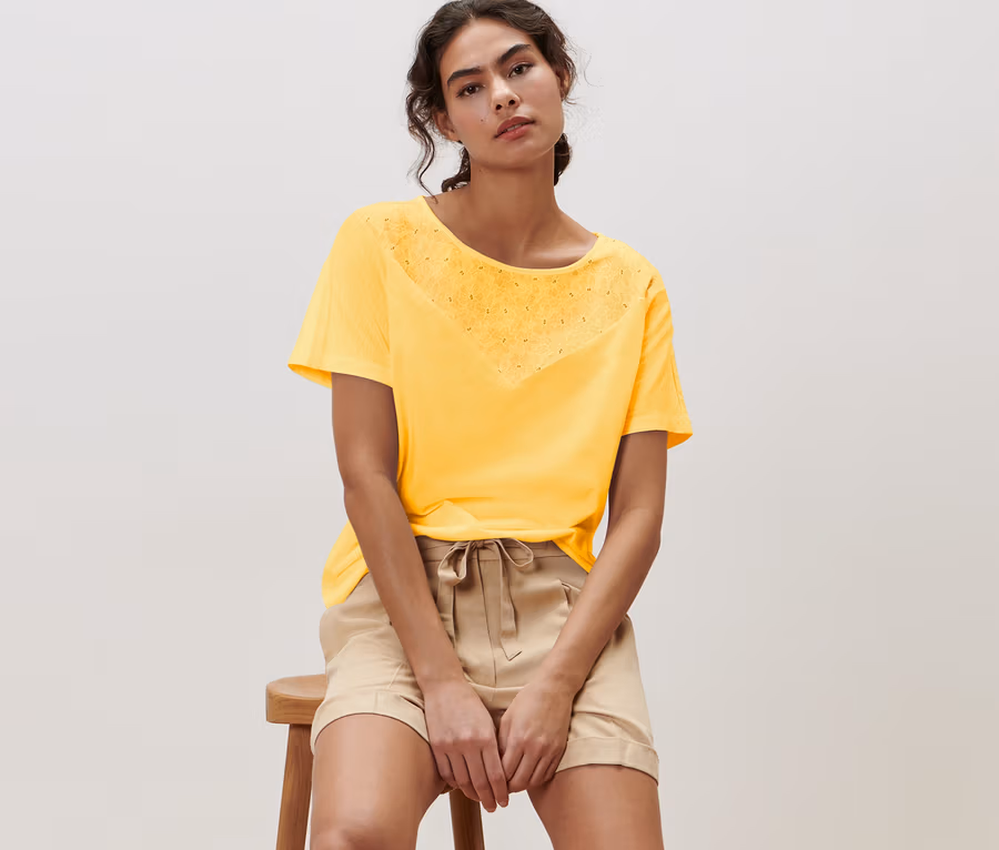 Pólóblúz hímzéssel, sárga