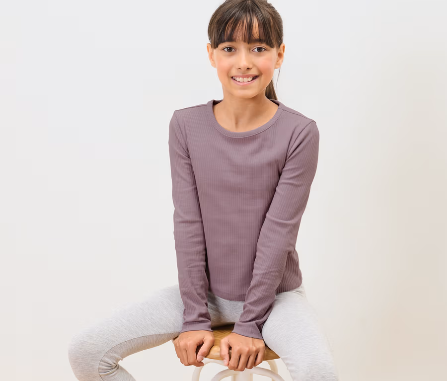 Lány hosszú ujjú felső, bordázott, mályva