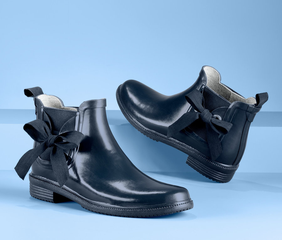 Szél és rossz idő esetén is szárazon tartja a lábakat - ez a keskeny fazonú gumi bokacsizma azonban még különösen jól is mutat! És amiért az időjárásálló szépség azonnal felhívja magára a figyelmet: a csinos masnik, a külső oldalakon található fűzőlyukak, és a kontrasztszínű, melírozott szürke bélés miatt.