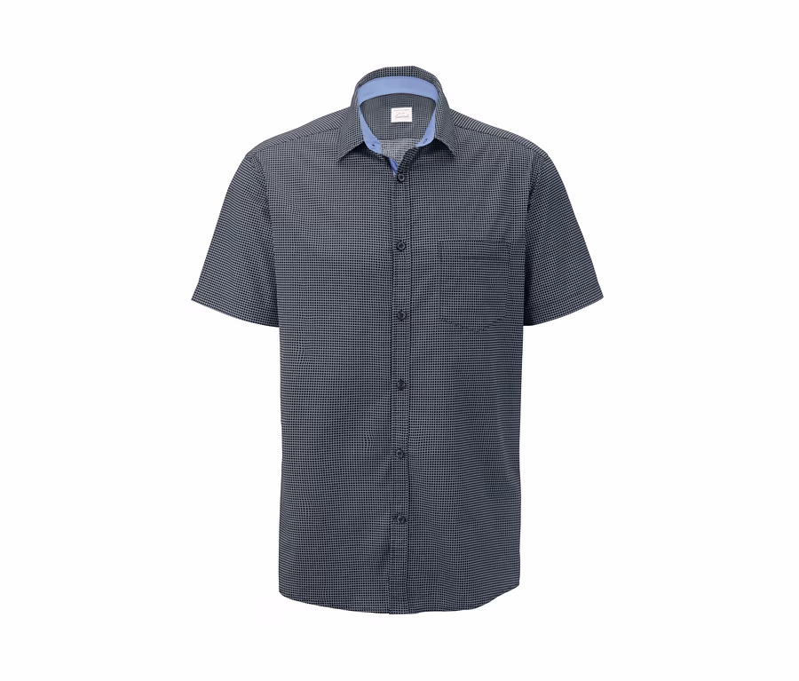 Klasszikus viselet szabadidőhöz: ez a rövid ujjú ing különösen meleg napokon is stílusos megjelenésről gondoskodik. Modern fit fazonnal, divatos kent gallérral, a baloldalon pedig egy mellzsebbel rendelkezik. Ezen kívül a férfi ing lekerekített alsó szegéllyel készült, gallérját és gomboláspántját pedig chambray-rátét díszíti. Az összevarrás után történő mosás enyhén koptatott hatást kölcsönöz a tiszta biopamutból készült felsőnek.