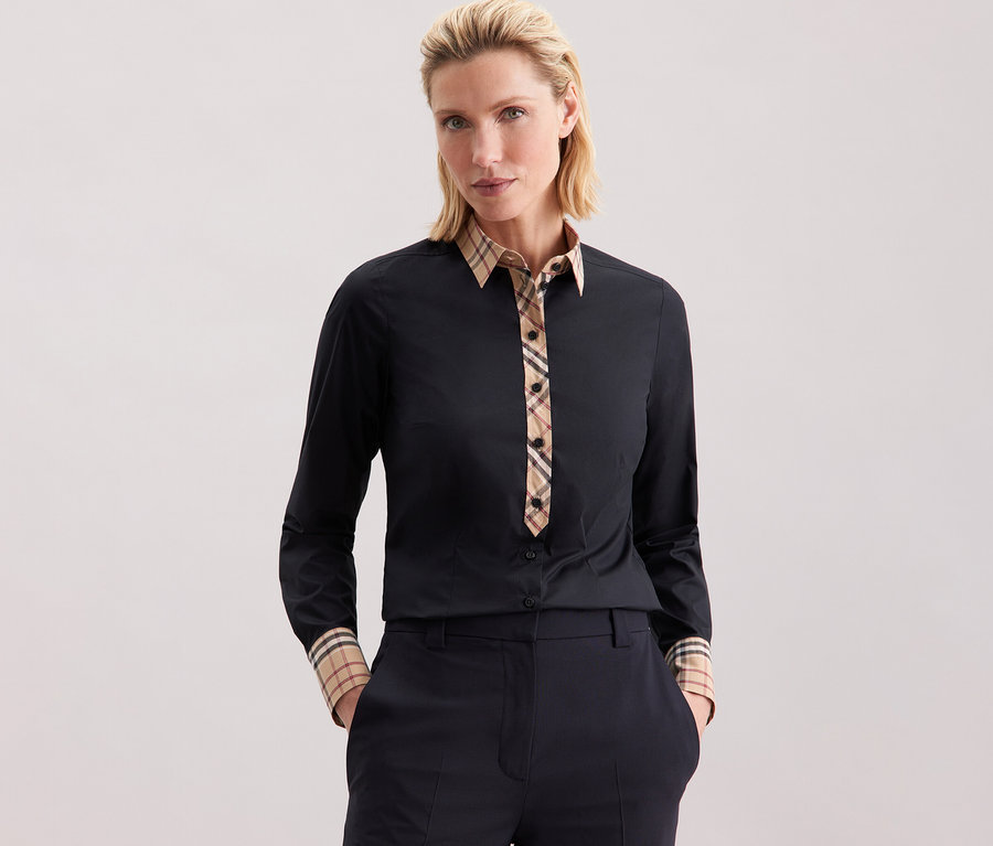 Seidensticker poplin blúz kockás elemekkel
