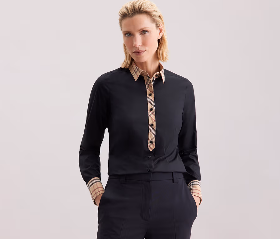 Seidensticker poplin blúz kockás elemekkel
