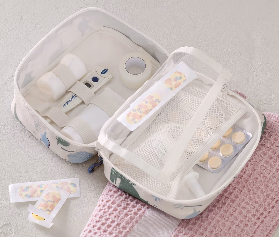 Gyógyszeres táska, gyerekzáras, dínós