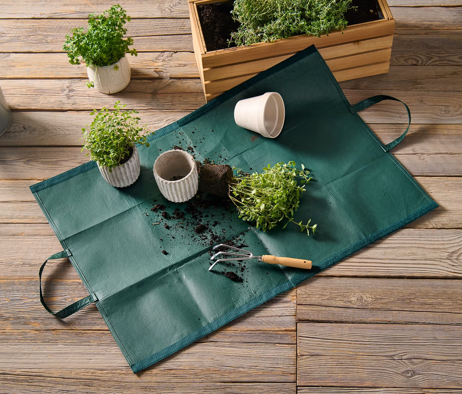 - Védő- és gyűjtőponyva fogantyúkkal a kényelemes szállításhoz, amely segít a nyesedékek és zöld hulladékok hordozásában a kerti munkák során