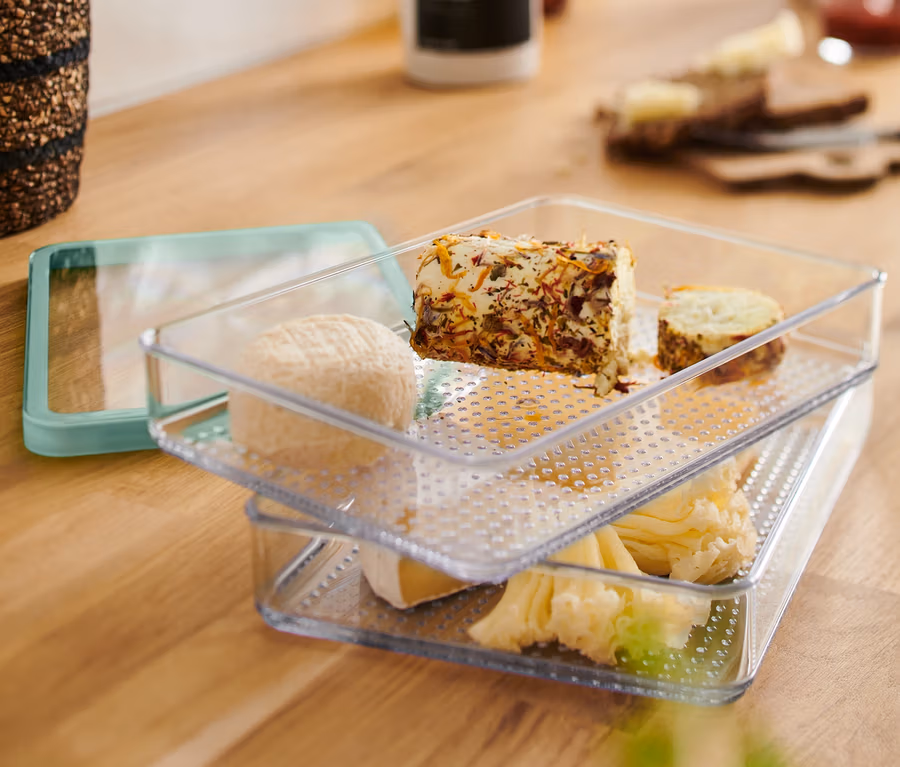• Az edény alja strukturált: a tartalom könnyű kivétele, a levegő keringése és a nedvesség elvezetése, meghosszabbíthatja az élelmiszer eltarthatósági idejét