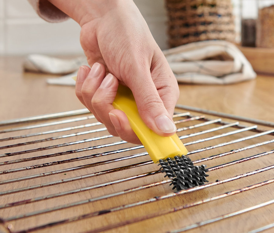 - széles fej a rácson (sütőrácson) lévő makacs szennyeződések egyszerű eltávolításához. Kaparó a sütőlapon lévő makacs szennyeződésekhez. Sörtés kefe az erős szennyeződések eltávolításához. Szárazon és nedvesen is használható.