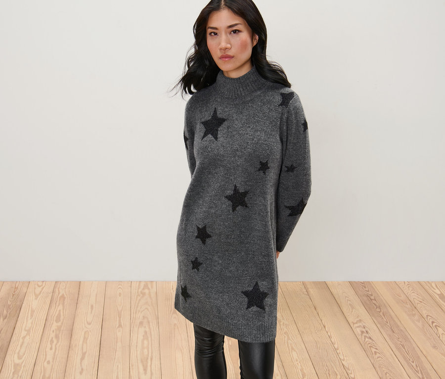 - Csillogó csillagformájú jacquard minta elöl és az ujjakon
