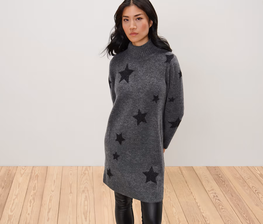 Női kötött ruha, csillagos, sötétszürke