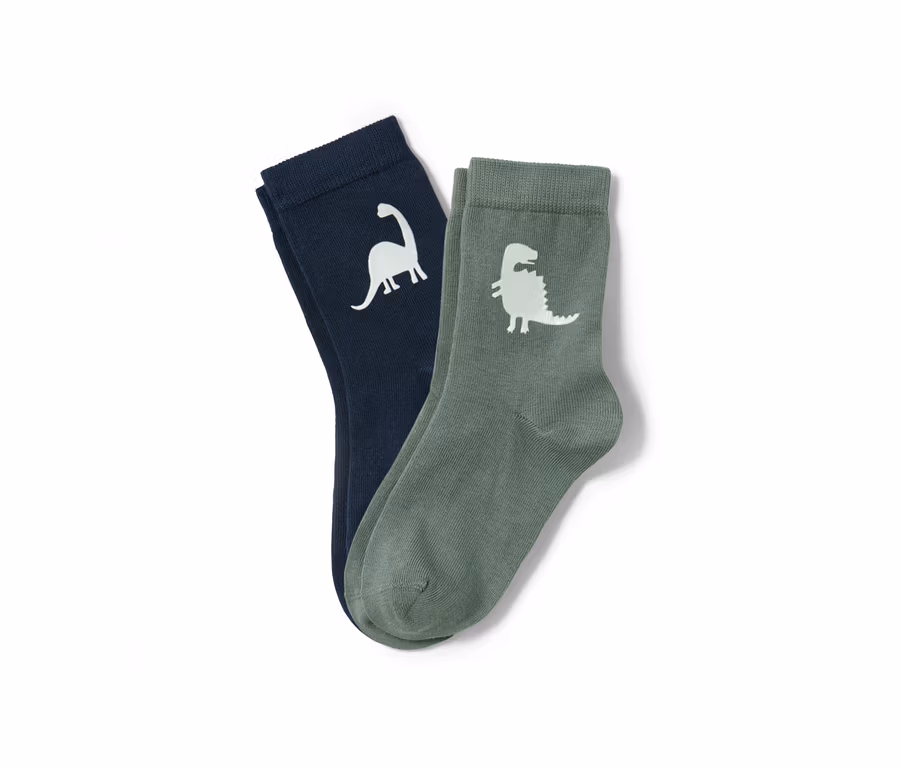 - 1x sötétkék, nyomott fluoreszkáló dinómintával, 1x fenyőzöld, nyomott fluoreszkáló dinómintával
