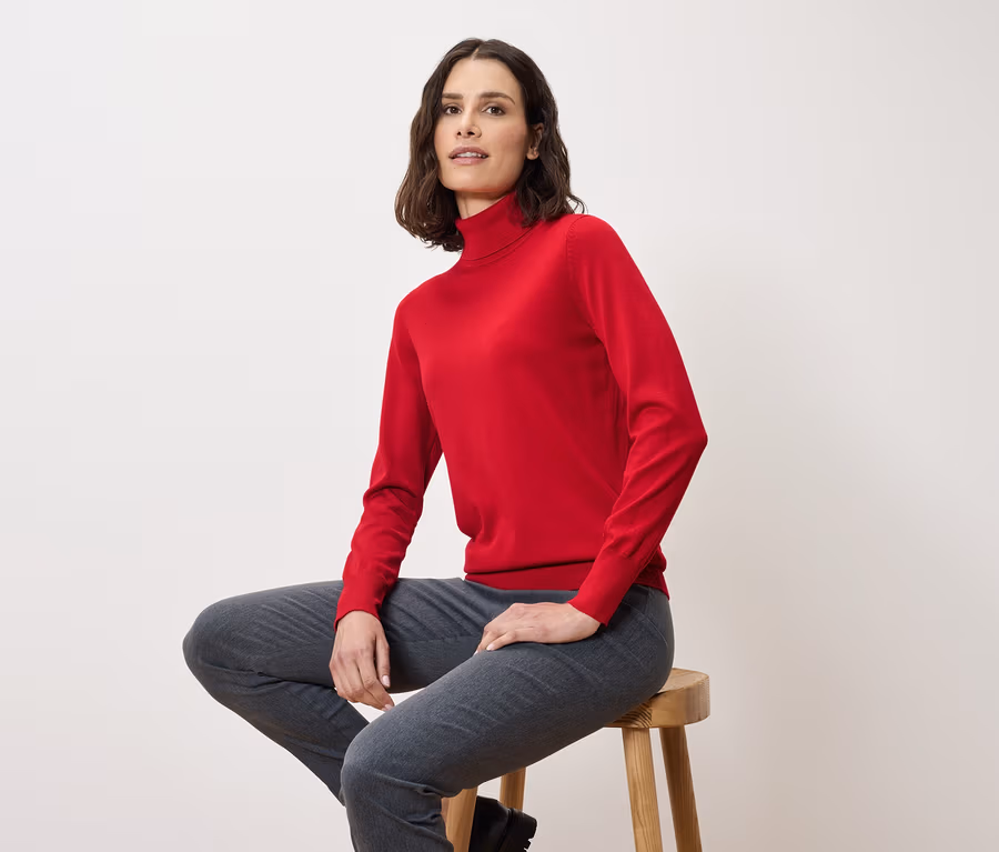Finom kötésű, garbónyakú pulóver, piros