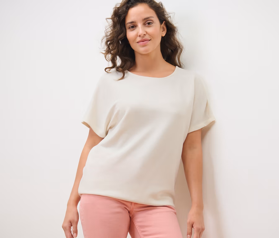 Női pólóblúz, strukturált, krémfehér