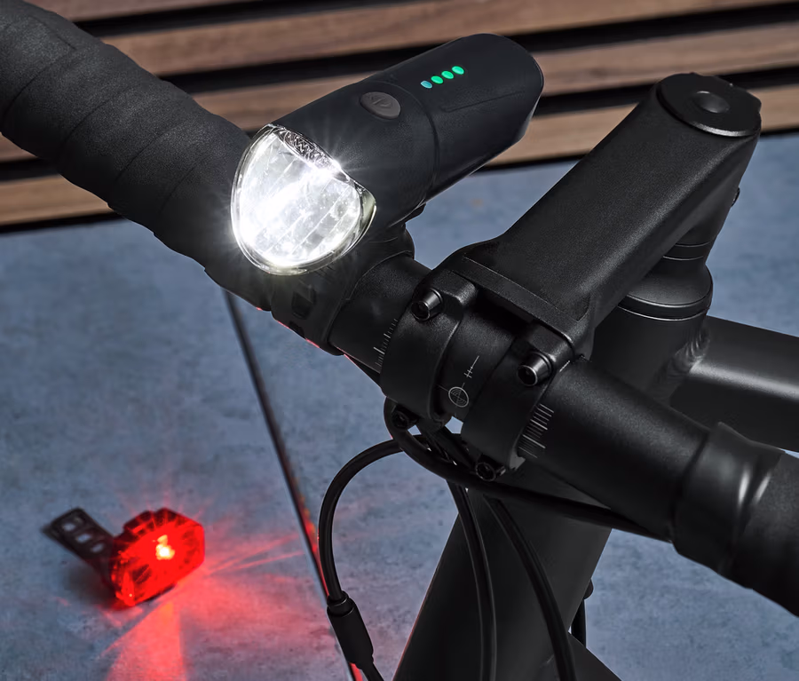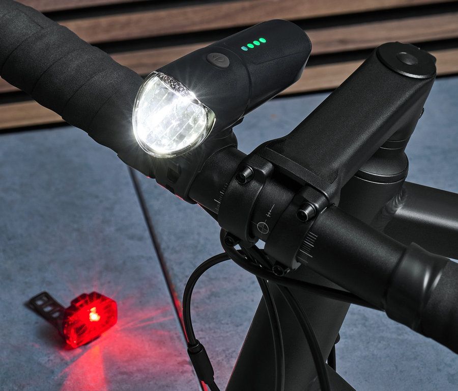 - LED-es akkumulátoros elülső lámpából és LED-es akkumulátoros hátsó lámpából álló készlet