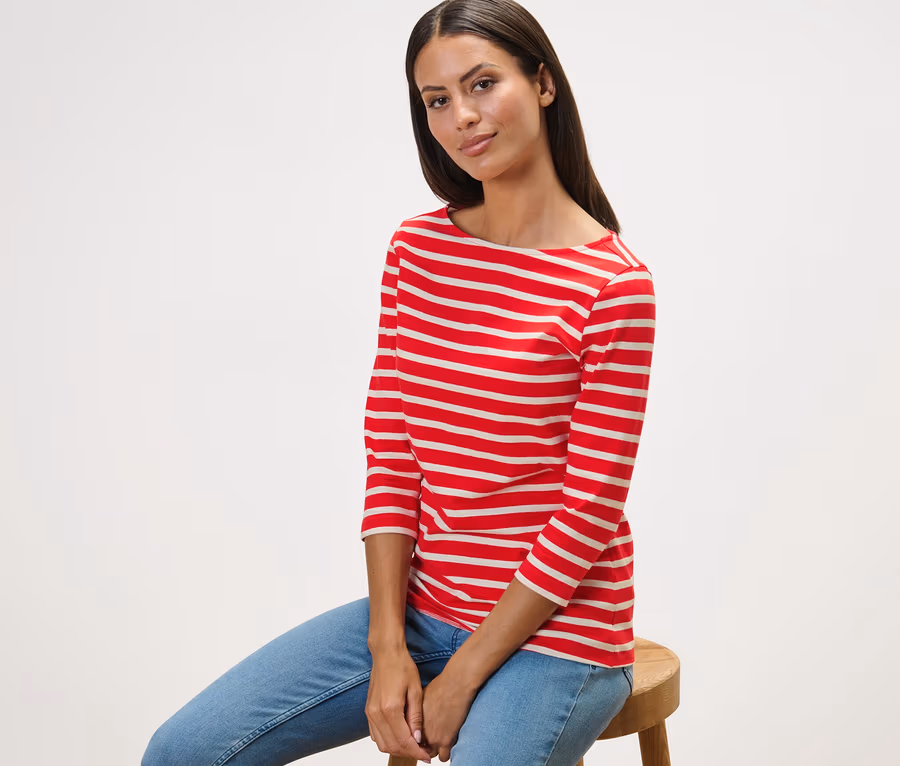 Női csónaknyakú felső, csíkos, piros