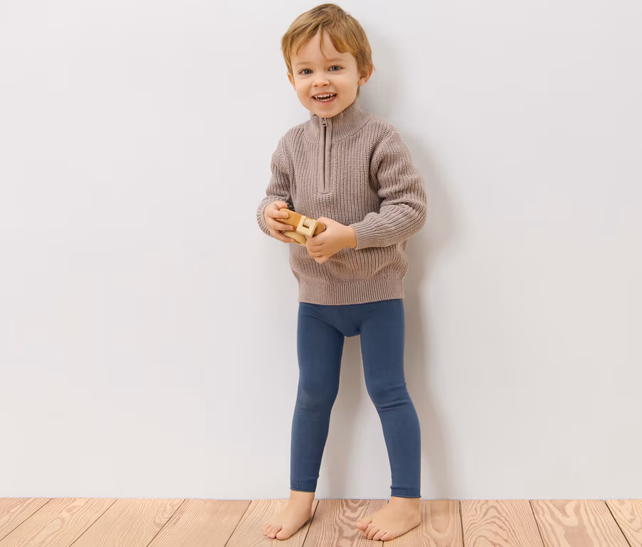 3 kötött gyermek leggings, kék/barna