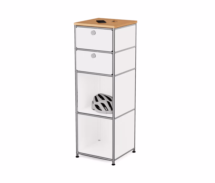 »CN3« keskeny fém komód fa felső lappal és 2 fiókkal, fehér
