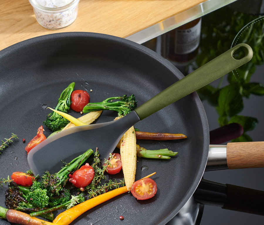 • Serpenyőlapátként, tálaló- és szószos kanálként, valamint tésztakaparóként is használható