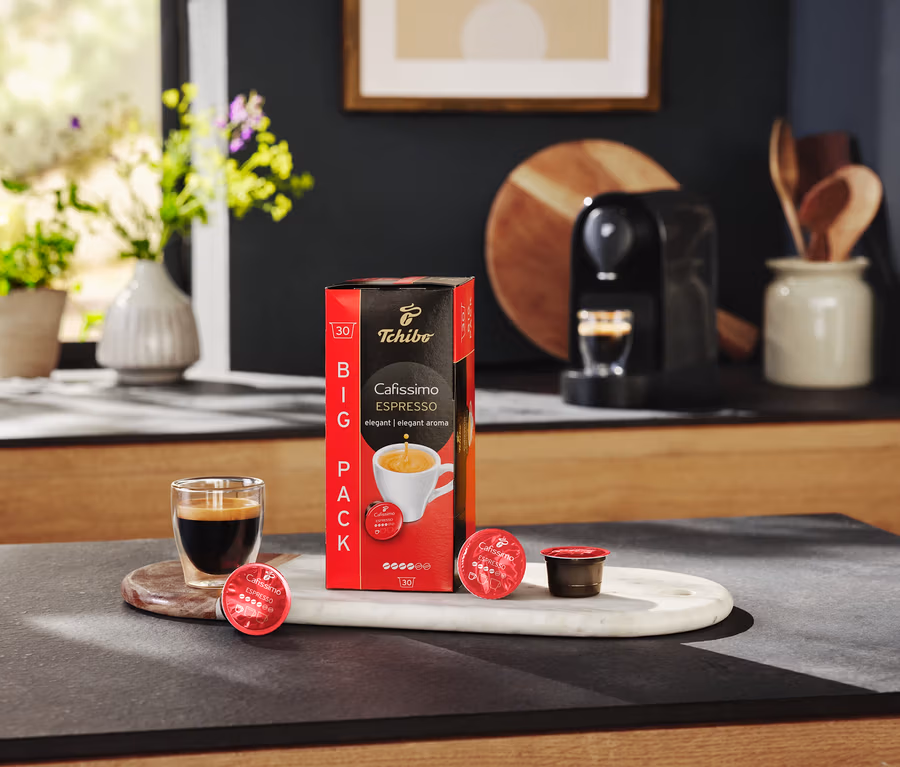 Szakértőink gondos kiválasztásának és a Tchibo egyedi pörkölési eljárásának köszönhetően, ennek az erős eszpresszónak az erőteljes aromája és intenzív íze tökéletesen kibontakozhat.