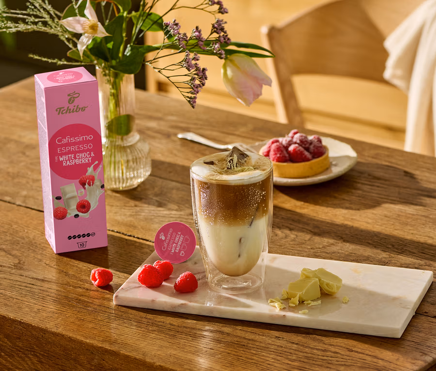 A markáns eszpresszó találkozása a finom fehér csokoládé és a málna egyedülálló ízével.